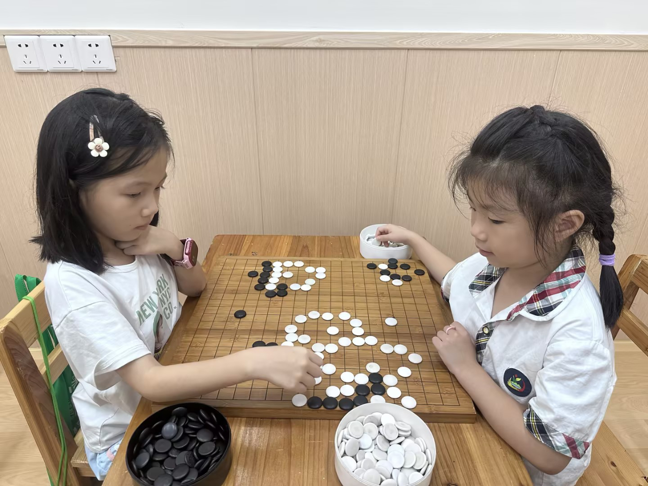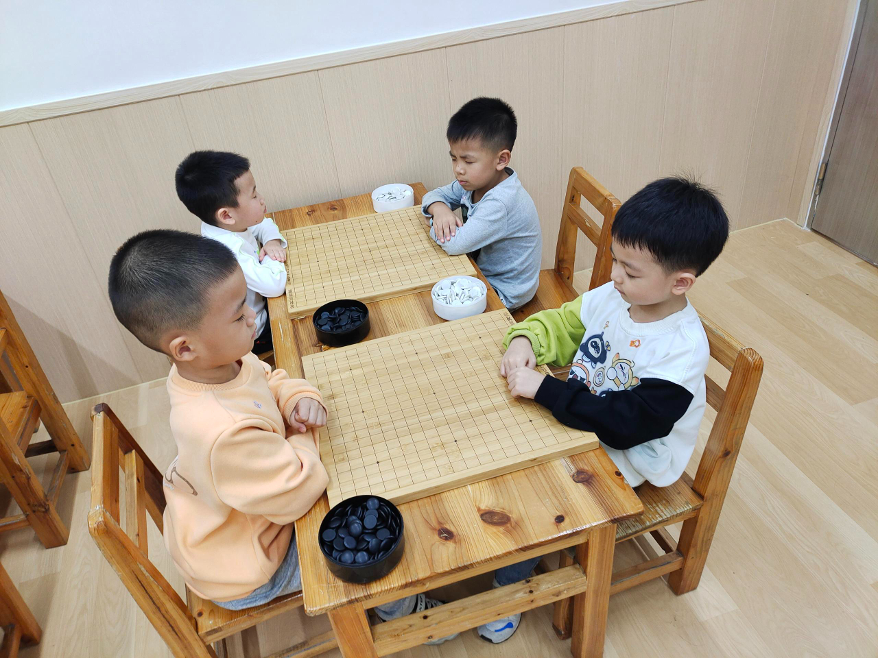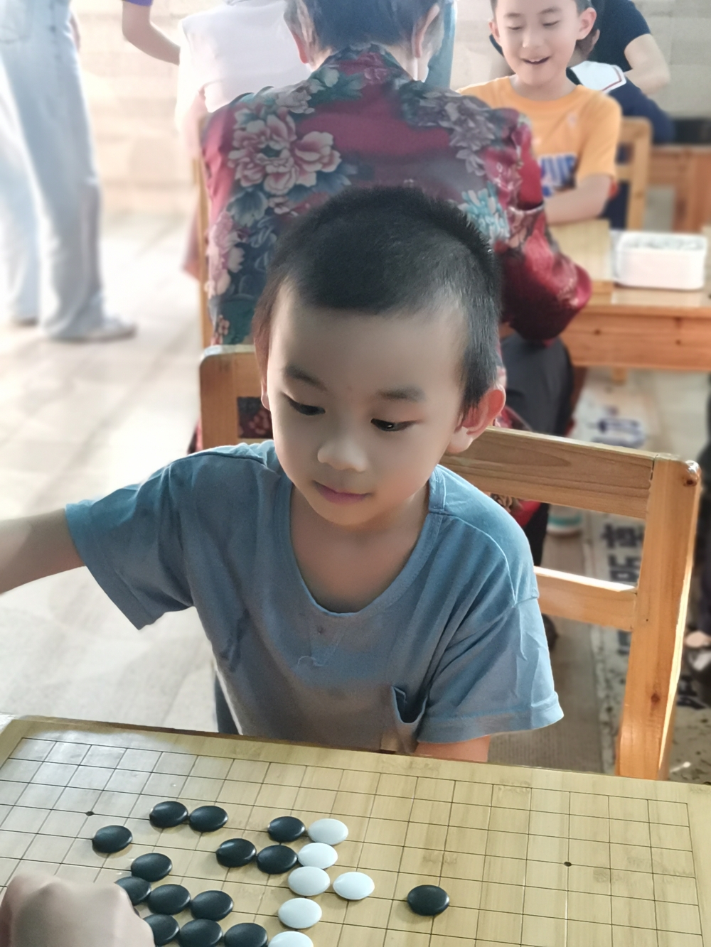 對弈前的坐姿端正,對弈中的聚精會神,這模樣足以表達孩子們對圍棋的熱愛。
