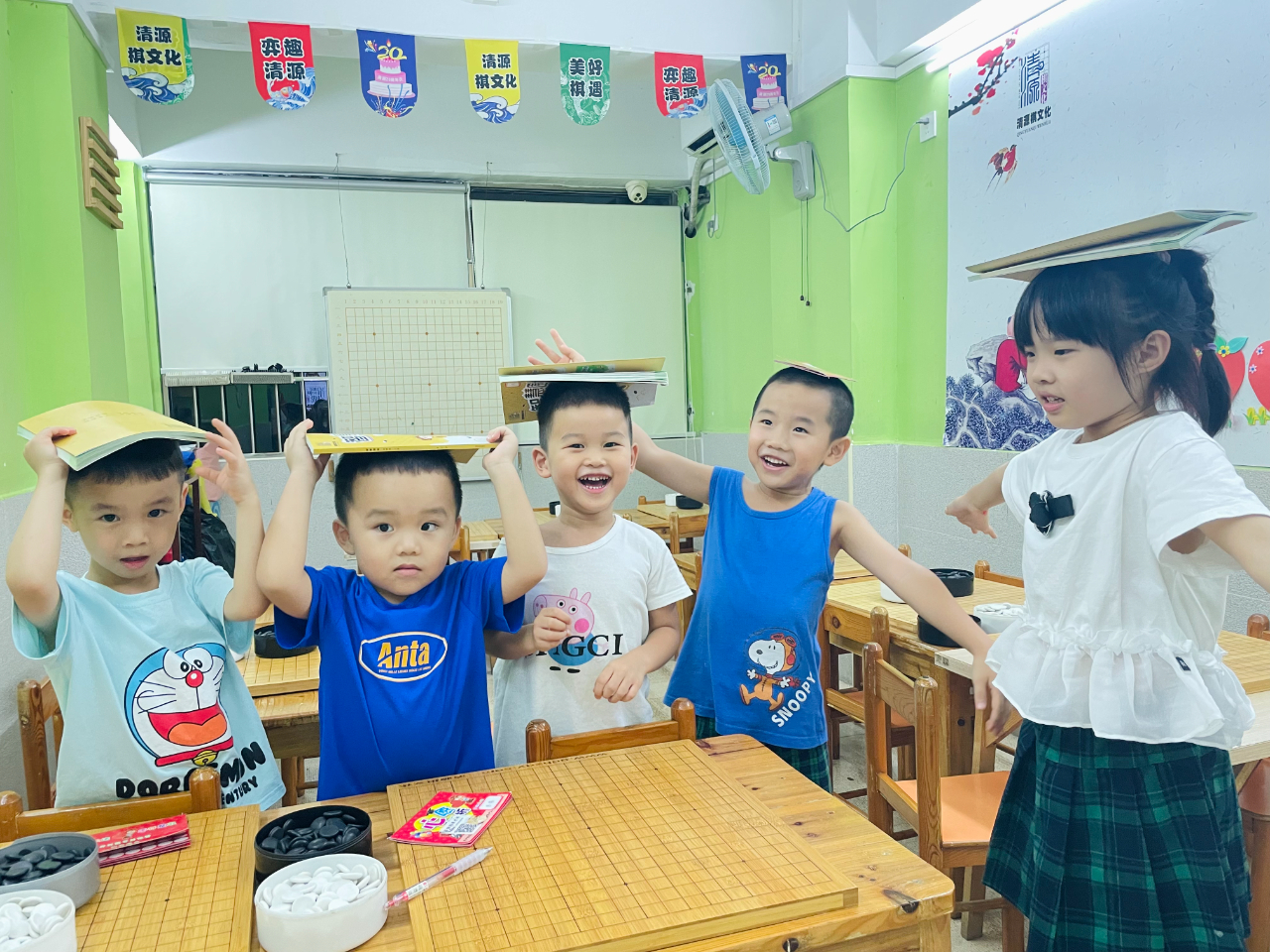 課間圍棋玩頭頂轉(zhuǎn)書(shū)游戲,可以鍛煉棋寶的平衡能力哦~
